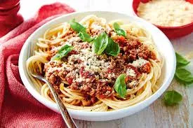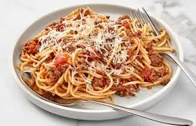 Spaghetti, bolognaise sauce, cheese